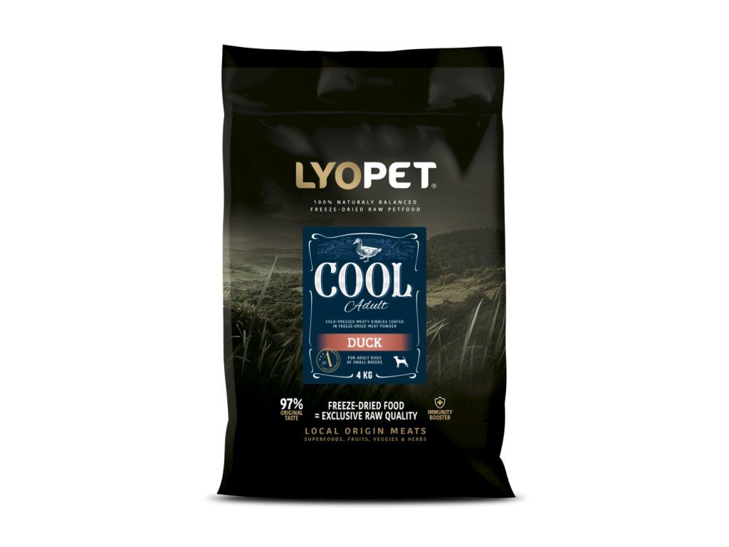Cool je kompletní superprémiové krmivo speciálně navržené pro psy trpasličích plemen. Obsahuje krůtí a kachní granule, šetrně lisované za studena a obalené v mase sušeném mrazem. Kvalitní granule pro psy s vysokým obsahem masa.