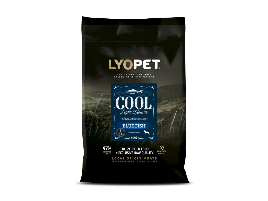 Cool je kompletní superprémiové krmivo speciálně navržené pro psy seniory a pro psy s nadváhou. Obsahuje rybí granule, šetrně lisované za studena a obalené v mase sušeném mrazem. Dietní granule pro psy s vysokým obsahem masa.